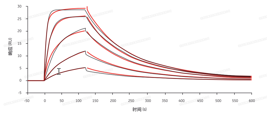 相互作用的一个分子通过共价键或者非共价键固定在传感芯片表面上,而另一个分子以溶液的形式流经传感芯片表面。由于分子间相互作用而引起的芯片表面质量变化就可以通过 SPR 技术实时地记录下来用于分析。记录的实时结合信号称为传感图,响应值(纵轴)的单位称为共振单位(RU)。